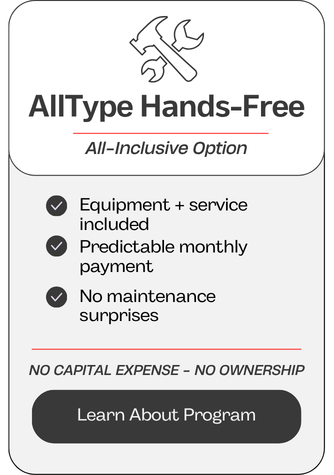 The AllType Hands-Free program an all-inclusive solution with a five-year minimum term in which AllType retains ownership of the equipment while service, parts, and unexpected repairs are included as part of the agreement. Together, these options provide customers with more ways to acquire and maintain the compressed air systems their operations depend on.